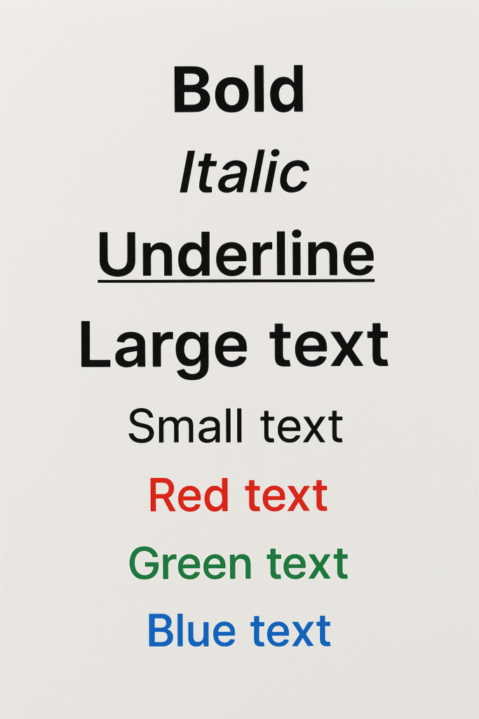 Format your writing exactly how you need it. Use bold, italic, and underline for emphasis. Customize text colour and size to make your writing uniquely yours.